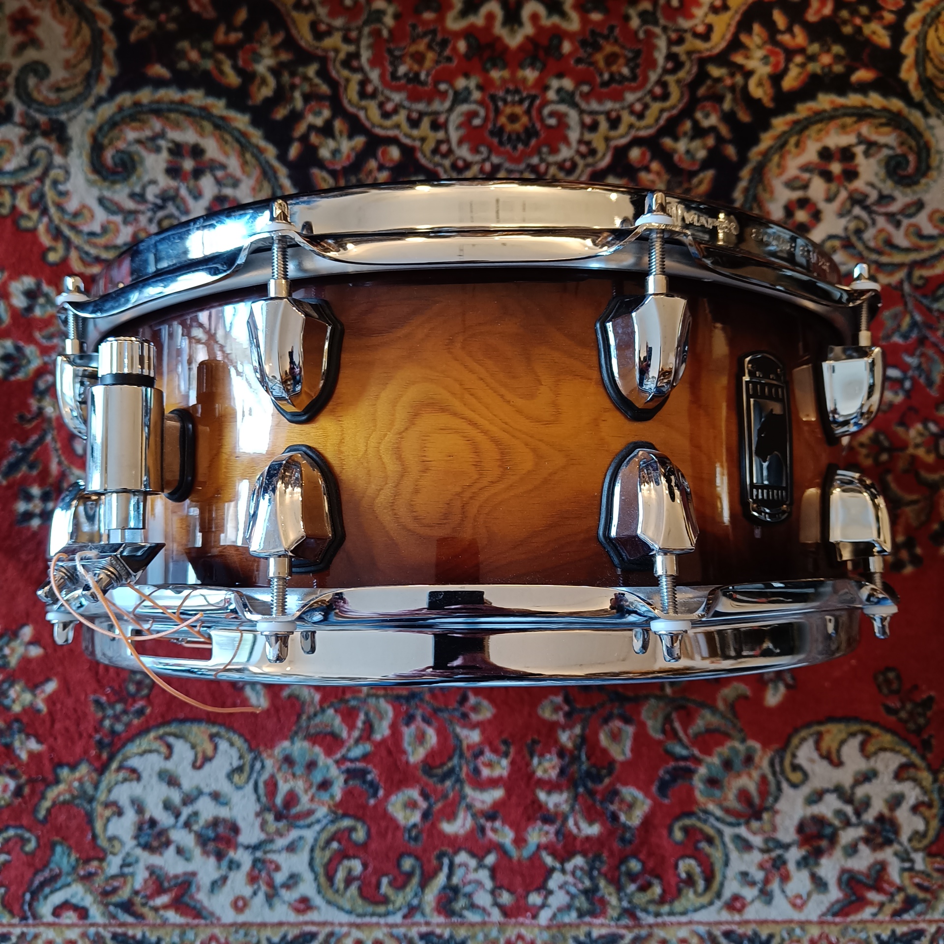 Pli central en Noyer (Walnut) de 3,4 mm : Le cœur du fût est constitué d’une épaisse couche de noyer. En raison de la densité et de la porosité du noyer, cette section agit comme un égaliseur naturel, boostant les fréquences basses et ajoutant une chaleur sombre au spectre sonore.