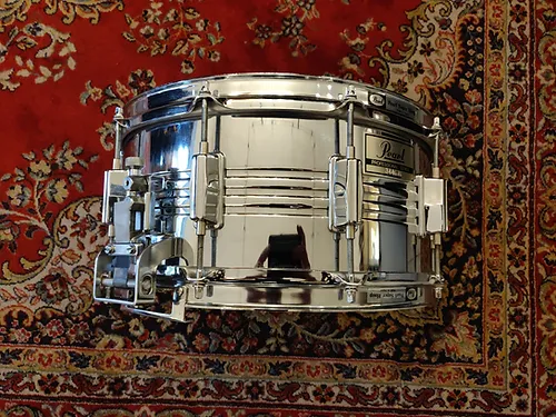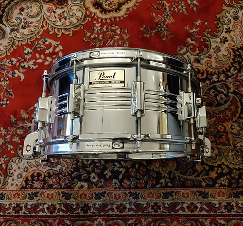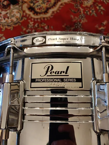 Pearl Professionnal M514D 14″x6,5″10 Lugs 2.3 Triple flanged Superhoops S-015 Extended Gladstone type strainerComme neuve