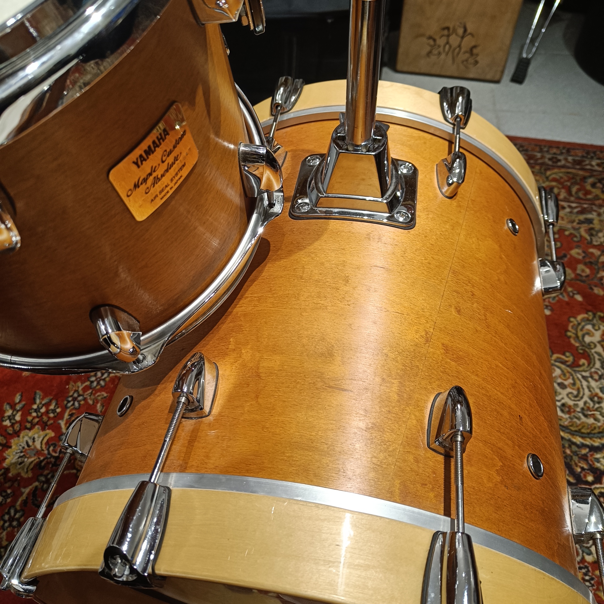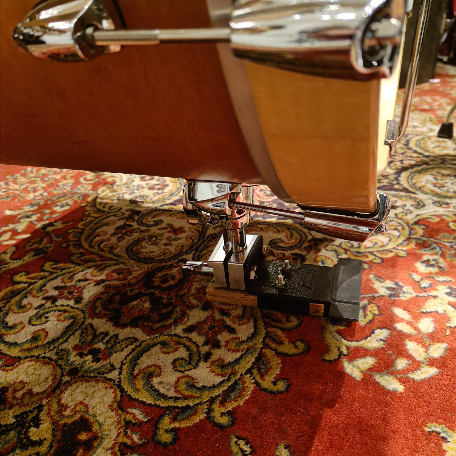 Grosse caisse créée à partir d’un tom bass de 16″x16″ (sur-élévateur grosse caisse installé)