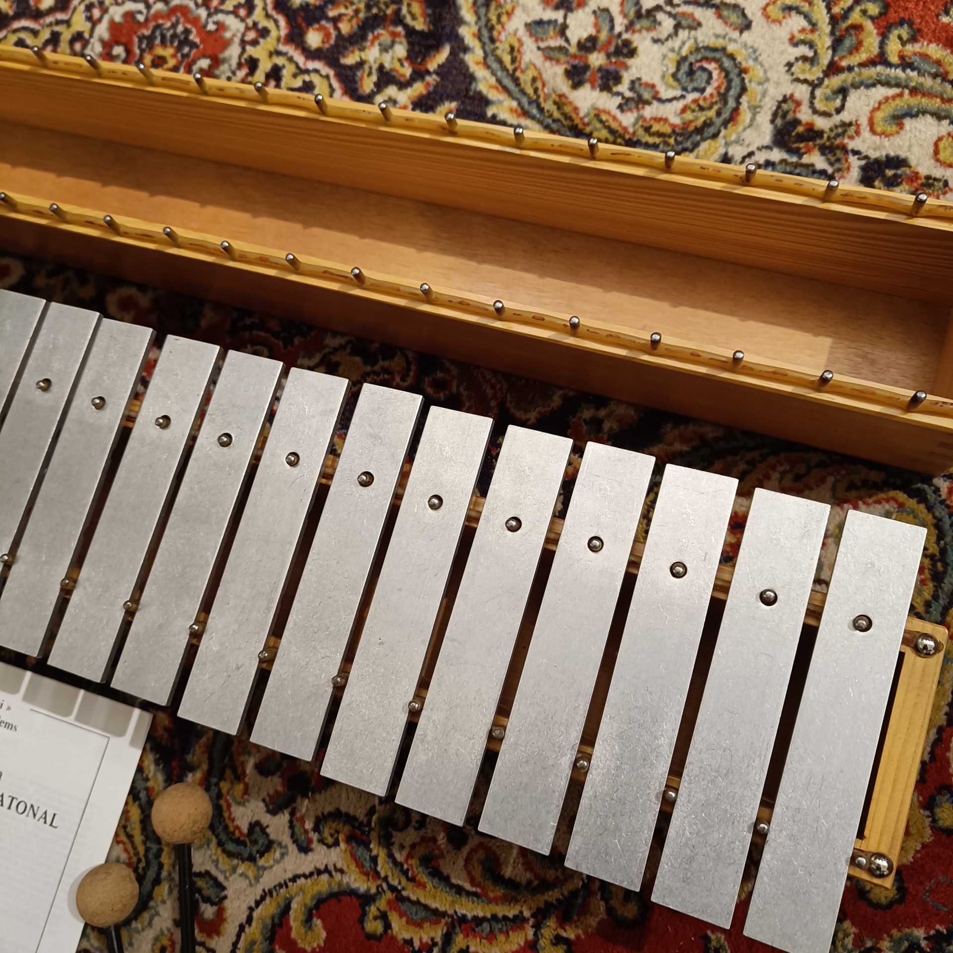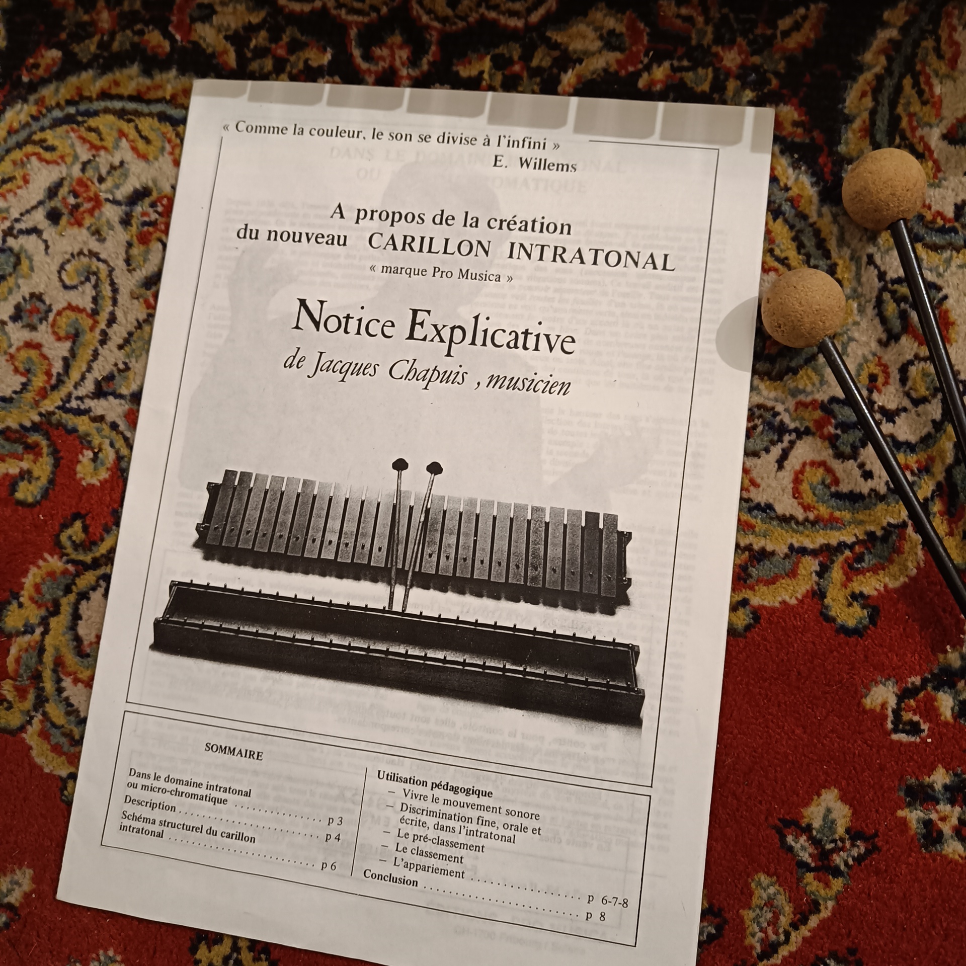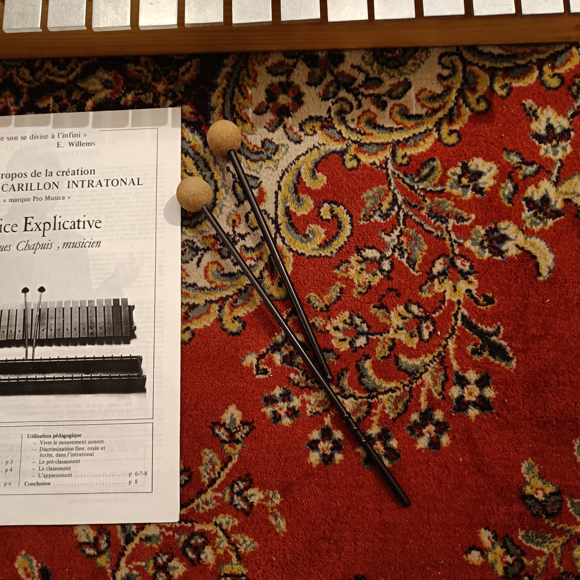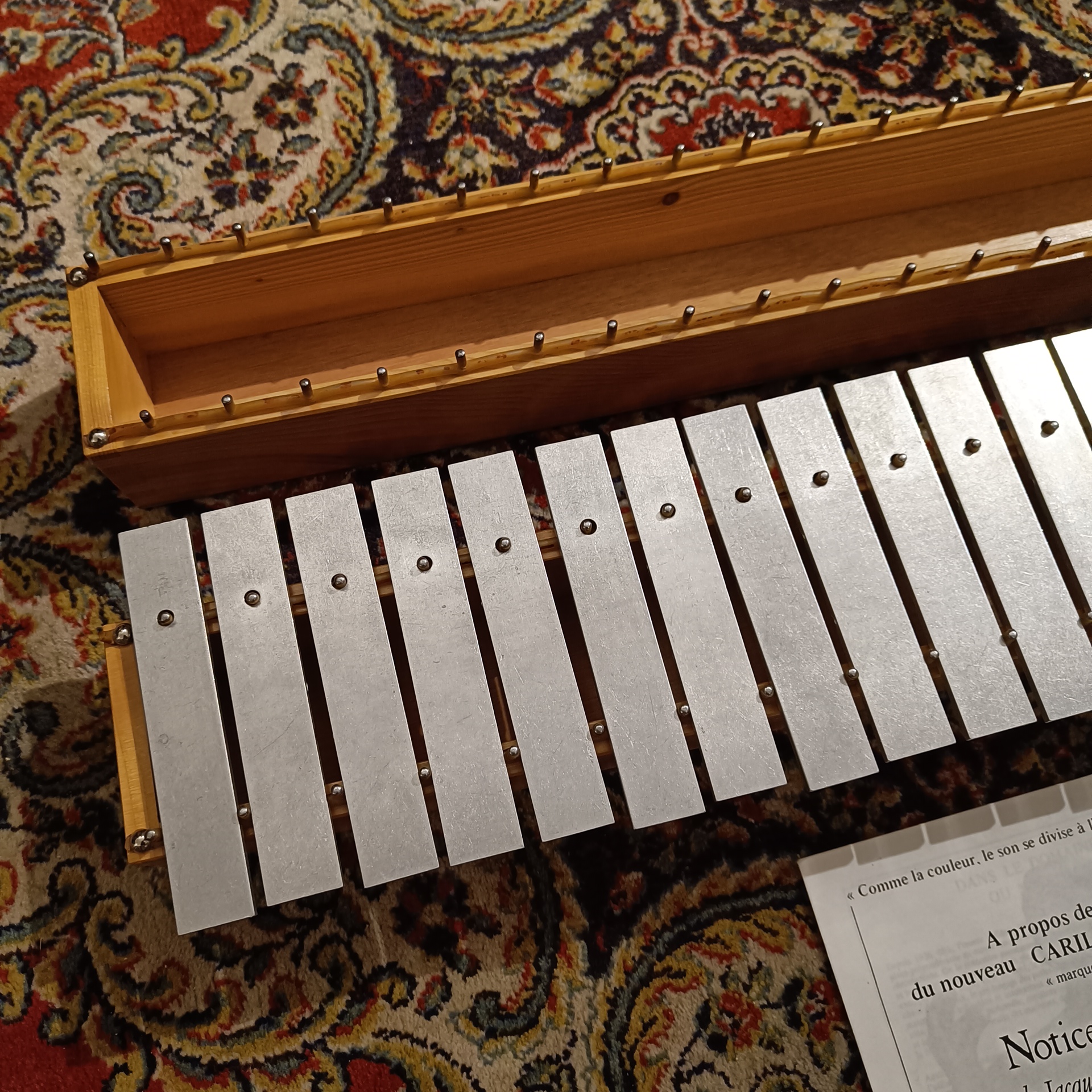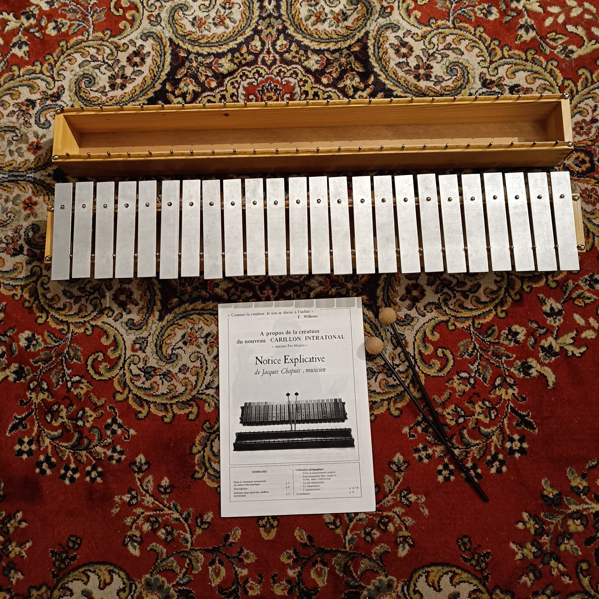 Le terme « Intratonal » fait référence à la capacité de l’instrument à produire des intervalles précis au sein d’une échelle donnée (micro chromatisme). Par ailleurs, la conception de ces carillons vintage intégrait déjà des processus de galvanisation pour protéger les lames contre l’oxydation. Ainsi, même après plusieurs décennies, les propriétés physiques du métal conservent leur module d’élasticité initial, ce qui préserve la fréquence fondamentale de chaque note.