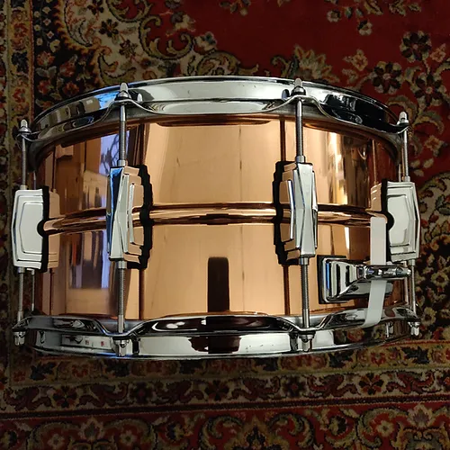 The Copper Phonic snare range was designed with Ludwig’s decades of experience building copper timpani. High Volume performance with complete focus and dark-low qualities, the Copper Phonic is the next best in Ludwig’s Phonic tone pallete. A true legend in the making. This Ludwig 14×6.5 Snare Drum features a 1.2mm Seamless Copper Shell, 2.3mm Steel Triple-Flanged Hoops, 10 Imperial Lugs, and 20-Strand Snare Wires