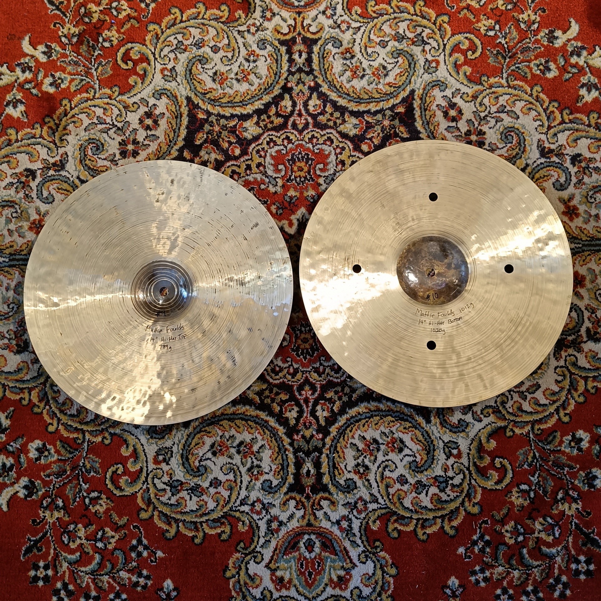 - Cymbale Bottom (Dessous) : 1020 grammes. Plus lourde, elle fournit une base solide pour le « chick », avec une puissance et un volume exceptionnels qui permettent au son de se projeter même dans les mix les plus denses.