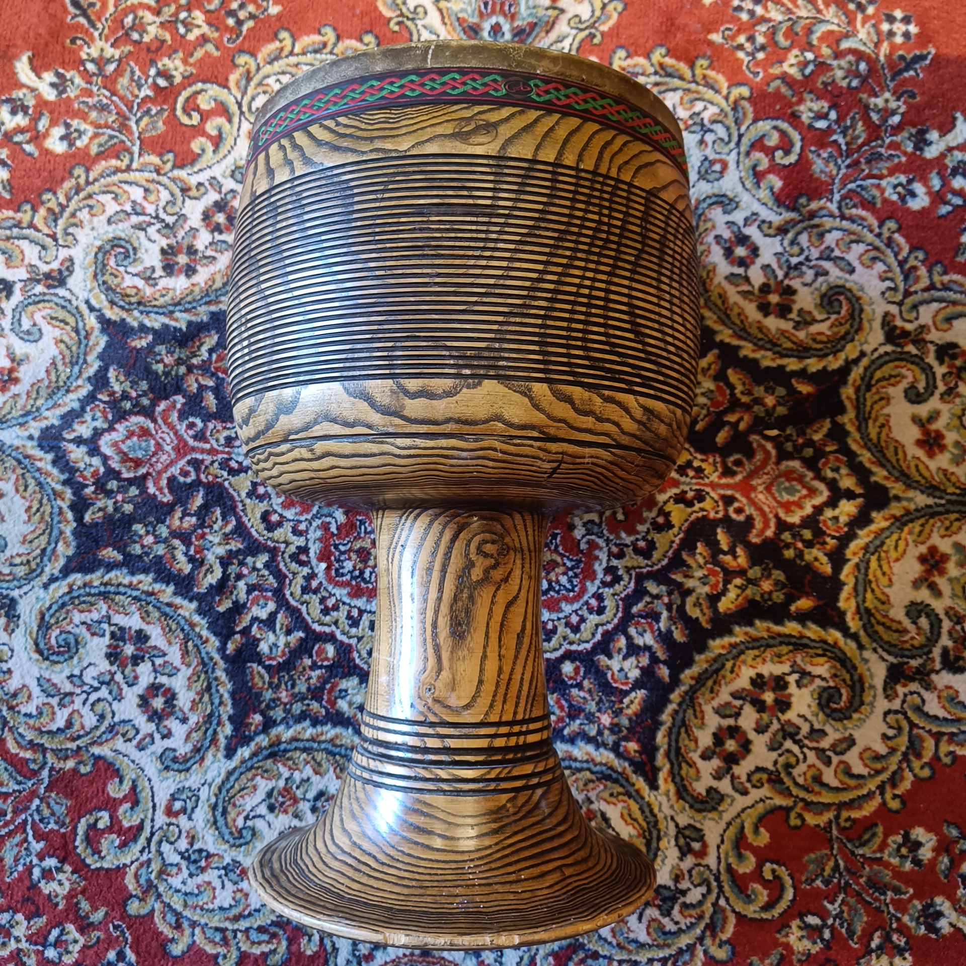 Le Tombak Helmi HEZ-180 est un tambour élaboré à partir d’un fût en bois massif, généralement du noyer (Walnut) sélectionné pour sa densité et ses propriétés de résonance thermique. Contrairement aux modèles bas de gamme, la série HEZ-180 repose sur une structure monobloc sculptée dans la masse. Cette méthode de fabrication garantit l’absence de joints de colle, optimisant ainsi la propagation des ondes sonores à travers les parois de l’instrument. En raison de sa morphologie spécifique en forme de calice, le Tombak permet une séparation nette entre les basses profondes (Bak) et les notes aiguës claquées (Snap).