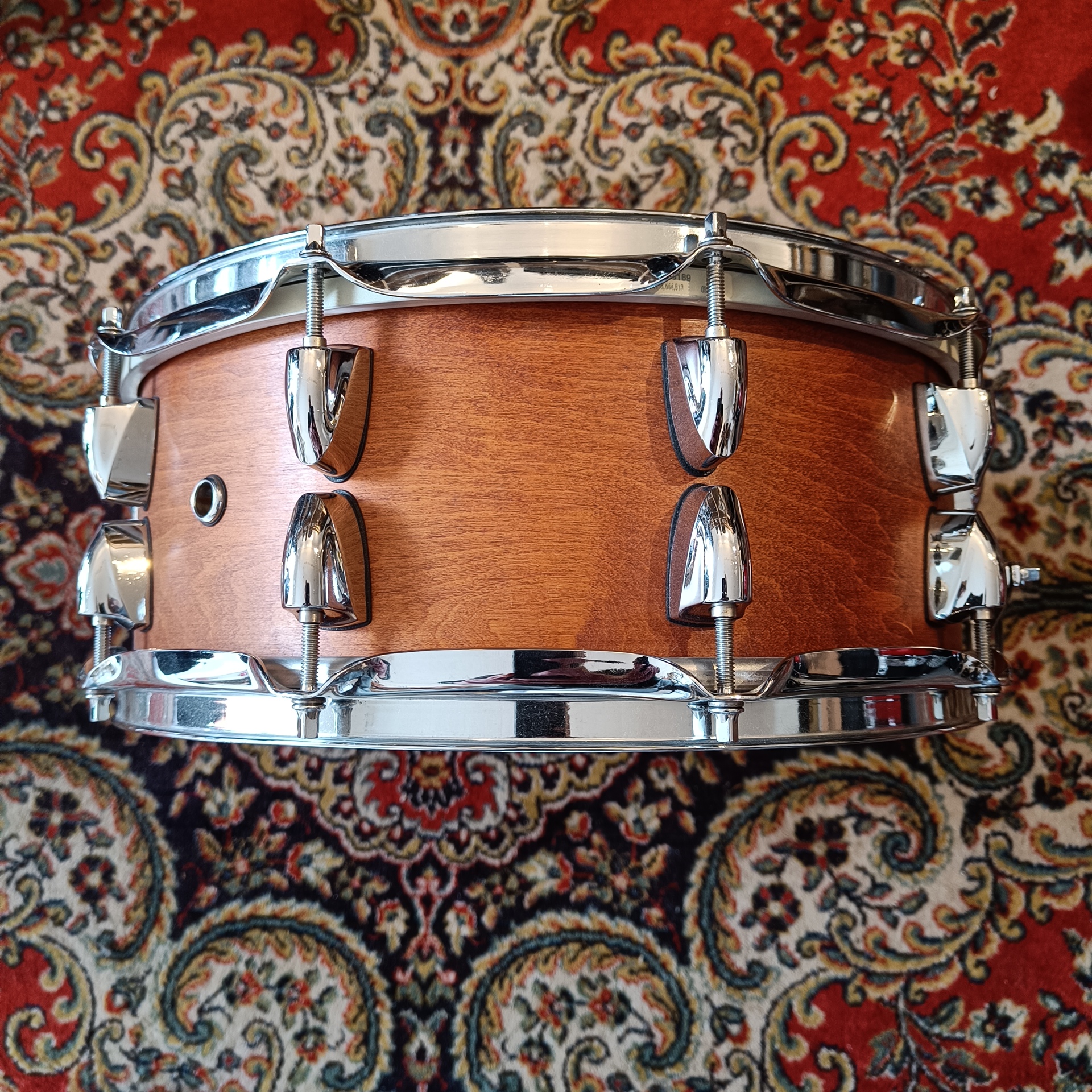 Le fût est constitué de 6 plis d’érable 100 % nord-américain, sélectionnés pour leur densité et leur grain régulier. Cette caisse claire offre un équilibre parfait entre les fréquences médiums et une chaleur acoustique caractéristique.